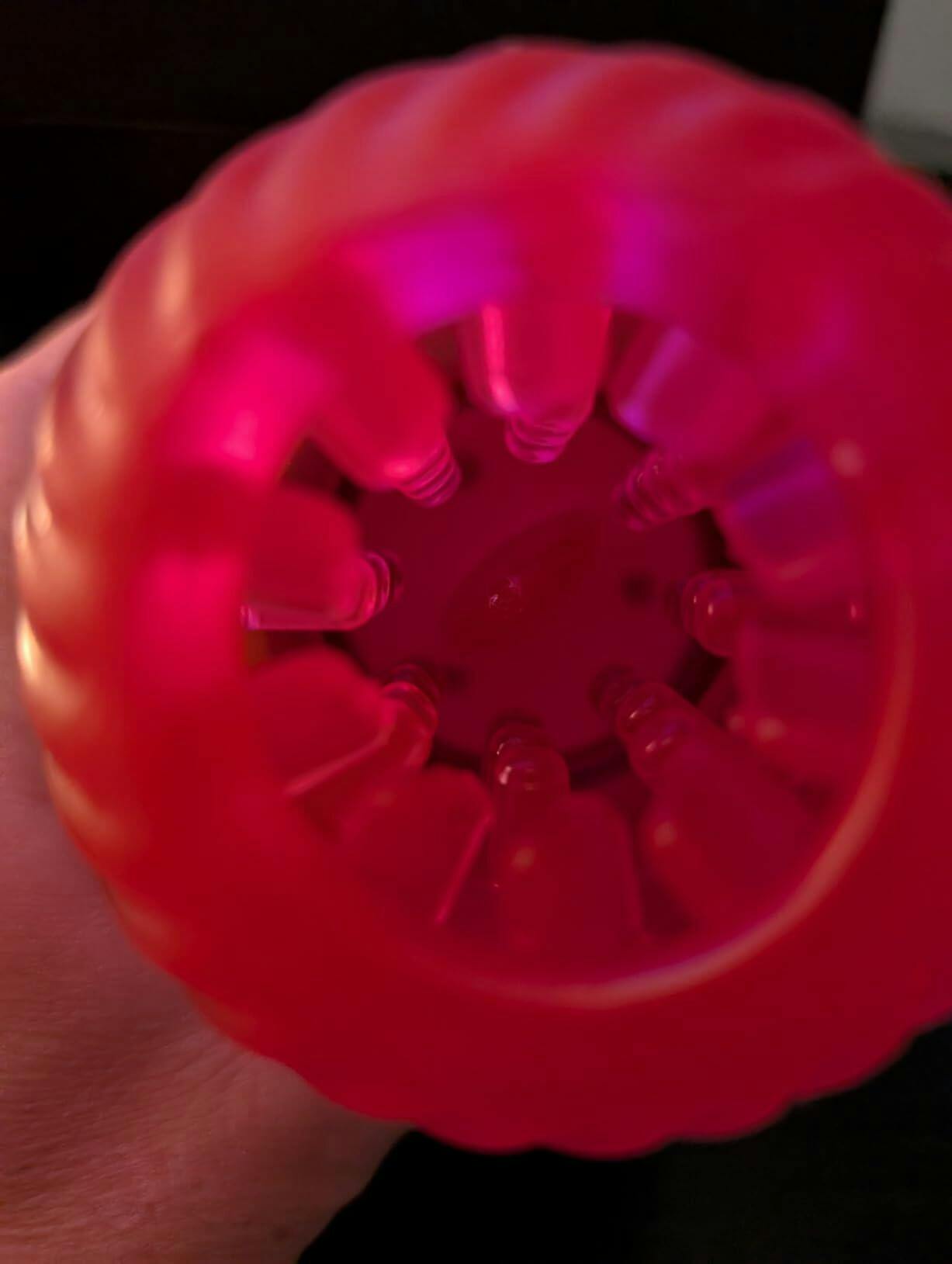 Soft jelly-like inner sleeve with textured tongue-style ridges for varied sensations.